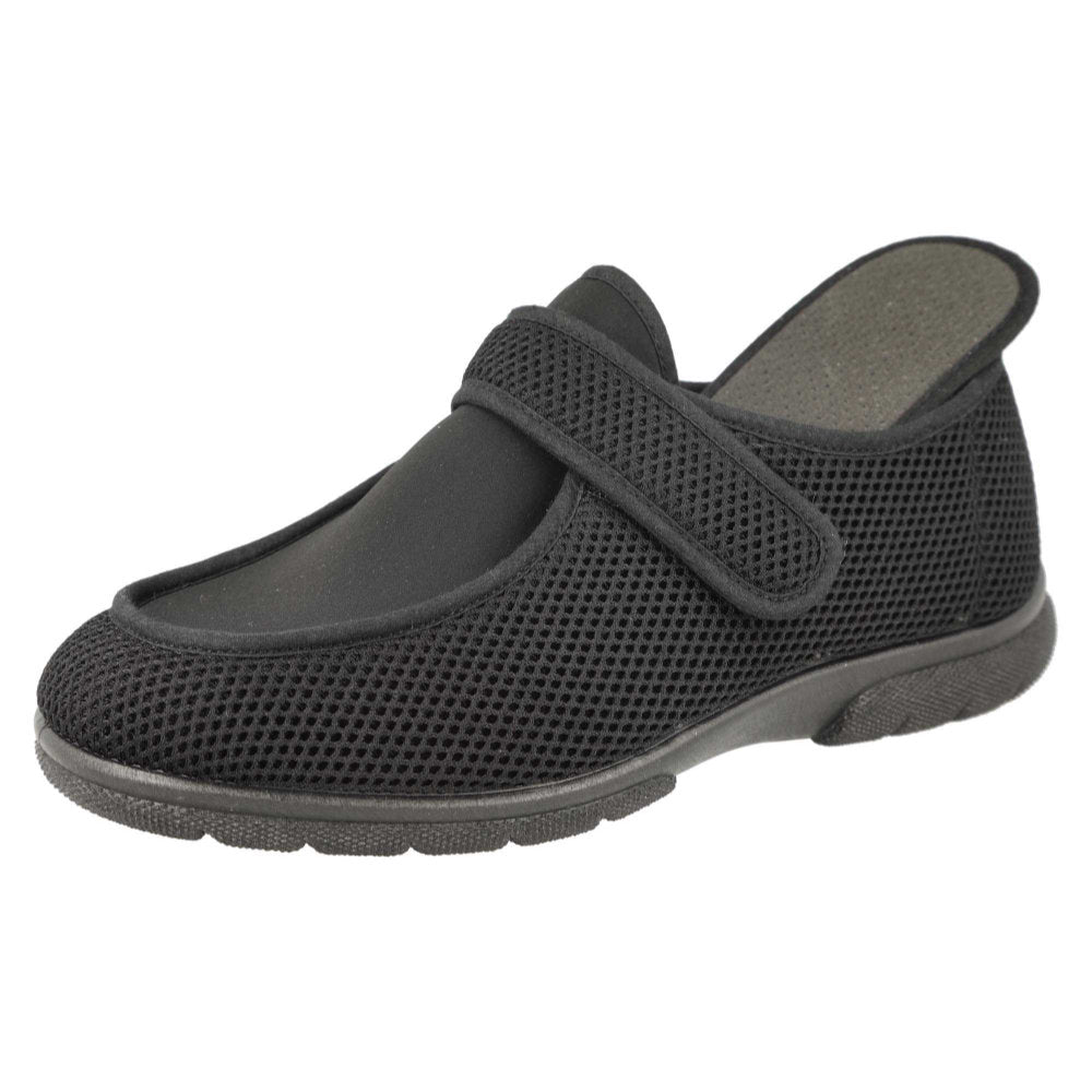 Jamie is a men’s wide-fit house shoe with a flexible stretch fabric that adjusts to your feet. It opens up for easy access and features removable insoles allowing for greater adjustment in the fit.