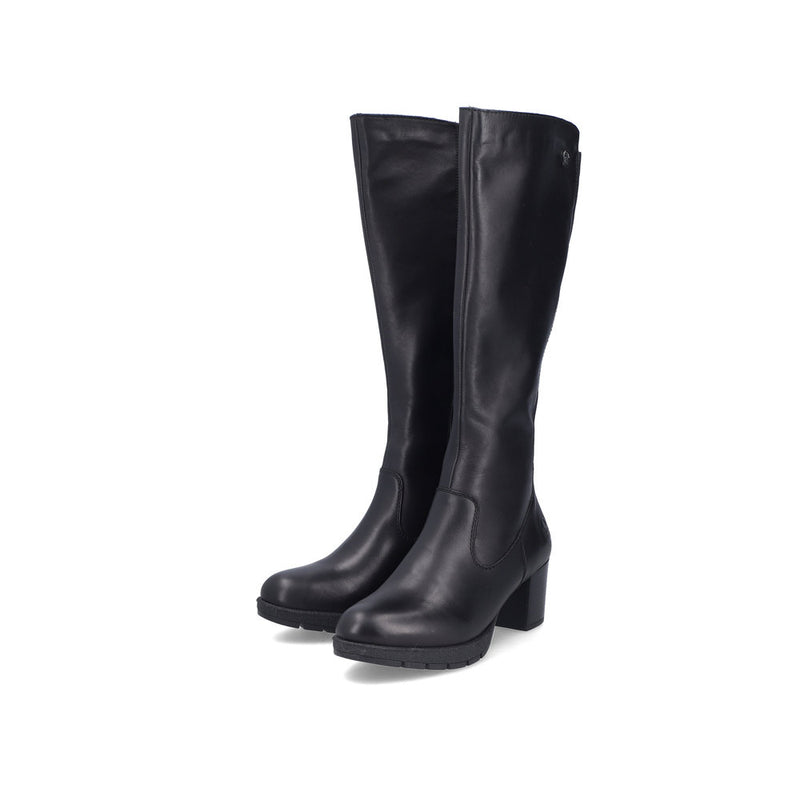 Fashion meets function. Go for maximum comfort and ultimate style with these black Rieker high boots made of smooth leather. The zipper allows for the shoe to be put on very quickly. The grippy sole with block heel gives good traction at every step. Thanks to the padded and removable insole, optimal comfort is a given. Furthermore, the comfort width offers your feet more freedom of movement in the forefoot area. The boots are ideal everyday companions!